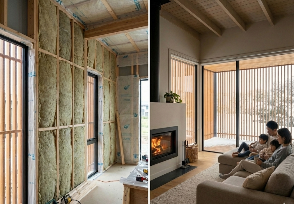 写真で見るデザインの美しさの裏側には、**「高性能な断熱材」**という強力なサポーターが隠れています。